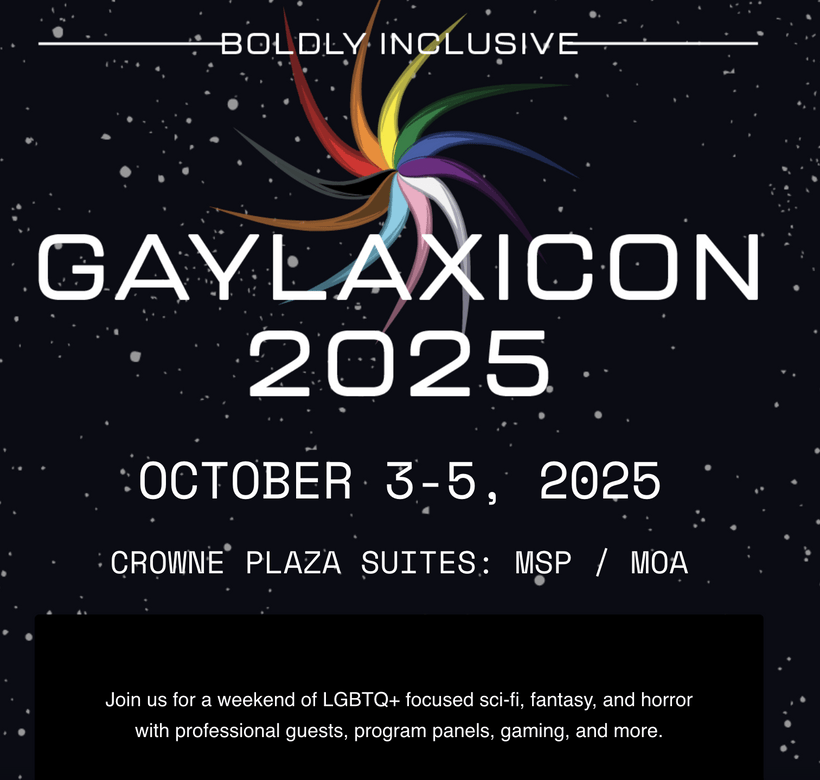 My first invitation to be one of the official guests of honor at a Con! I cannot wait to attend — it’s gay, it’s SFF, and it’s not on the East Coast.